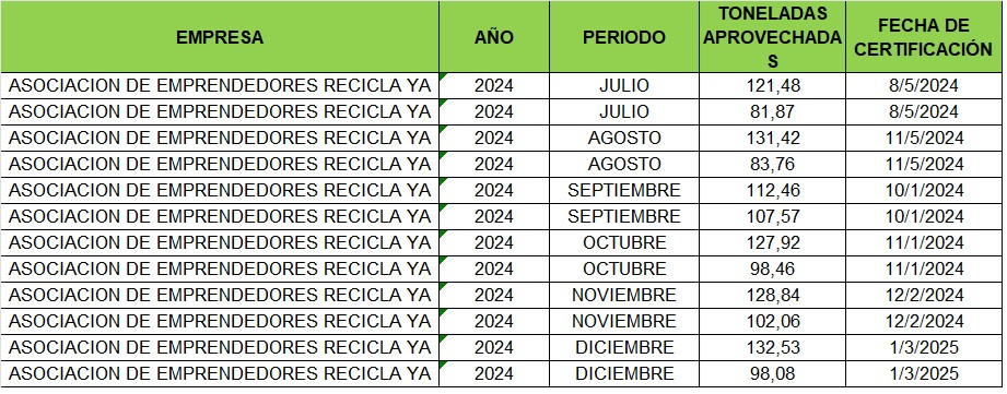ASOCIACIÓN DE EMPRENDEDORES RECICLA YA
